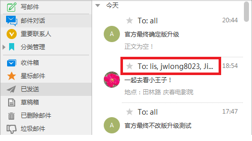修改邮件列表中收、发件人显示样式