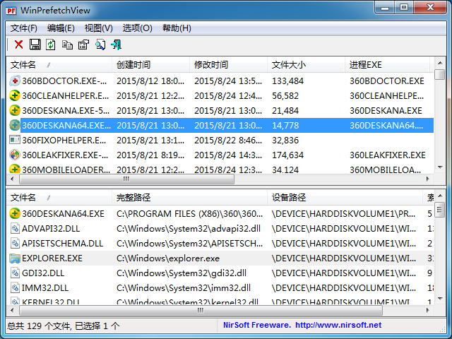 WinPrefetchView 是用于读取储存在您系统中的预读取文件,并显示其中信息的工具。通过查看这些文件,您可以知道每个应用程序使用了哪些文件,或者Windows启动时加载了哪些文件。