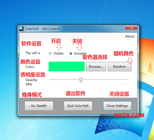 在下面还可以进行颜色浓度的设定,双击托盘图标可以快速的开启或关闭 ColorVeil 的颜色功能。