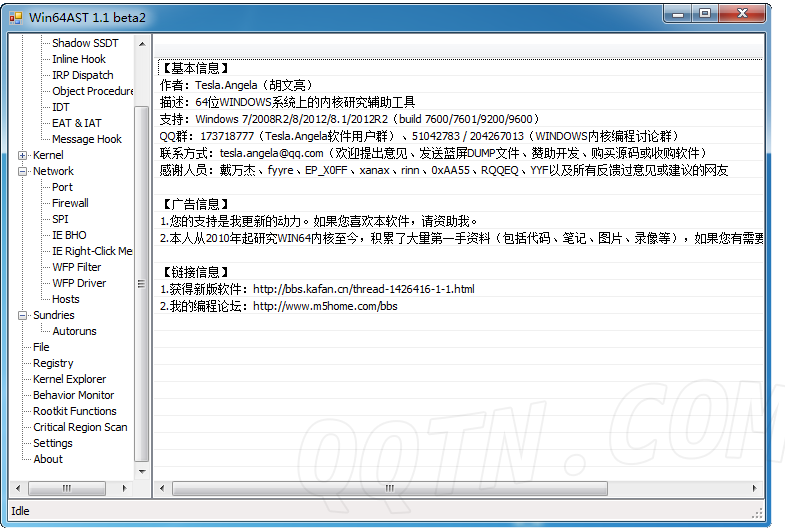 由于使用了特殊的内核技术,WIN64AST 能够从底层控制系统,有很大的操作权限,是一个强大的 Anti Rootkit 工具。