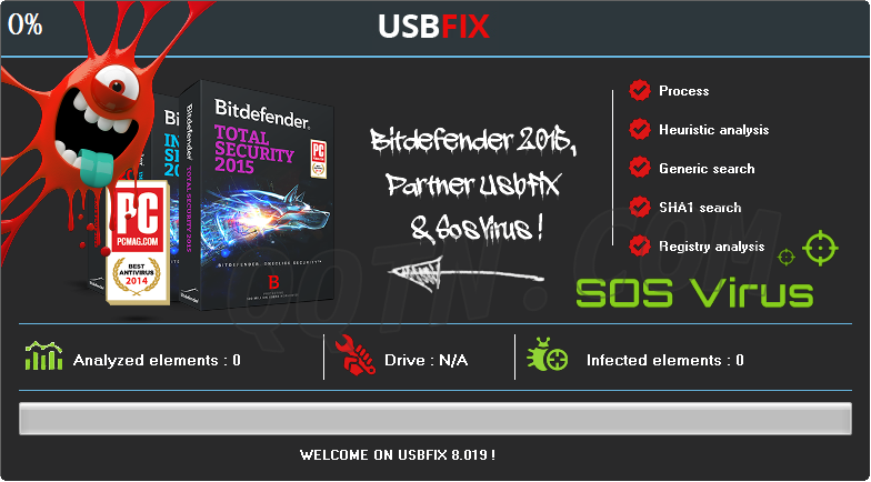 UsbFix适用于USB病毒工具消毒。UsbFix删除所有通过这个系统传播感染类型。