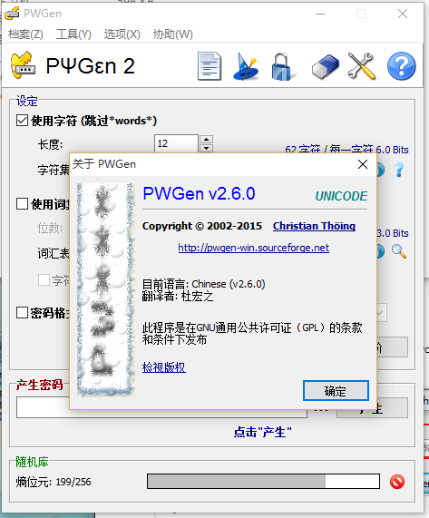 PWGen密码生成工具是能够创造大量的密码安全密码或密码短语构成的话从一个单词列表的专业密码生成器。它采用的是“随机池”的技术,以产生基于用户输入(击键,鼠标处理)和挥发性的系统参数的随机数据。 pwgen的提供了很多的选择,以自定义的密码对用户的各种需求。此外,它还提供了强大的文本加密和创建随机数据文件(例如,密钥文件)。