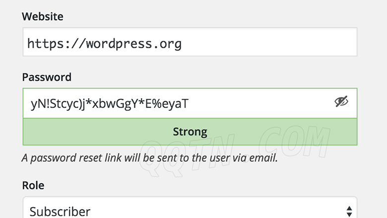 当您在网站新增用户或编辑用户资料时,WordPress将会自动产生一个安全密码。
