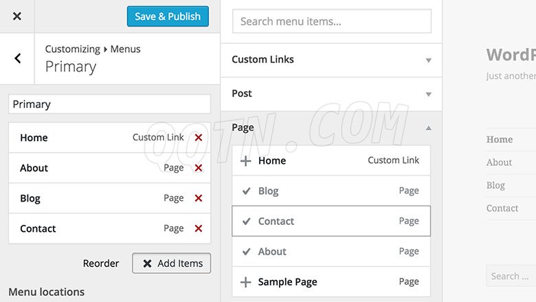 建立您的菜单,更新,然后指定至适当位置,同时还能在定制器里即时预览。