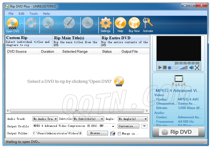 转换DVD到所有流行的视频和音频格式,如WMV,AVI,MPEG-4,MP3等。