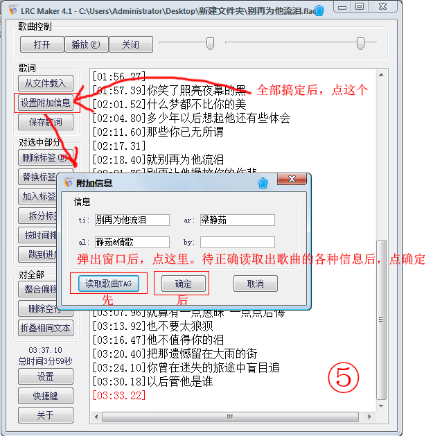 歌曲播放时,每一句开始按下“加入标签”按钮