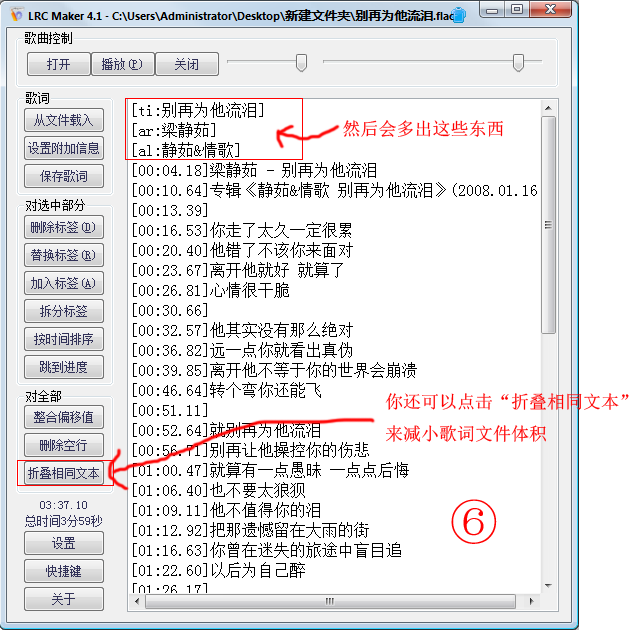 你可以点击“折叠相同文本”来减少歌词文件体积