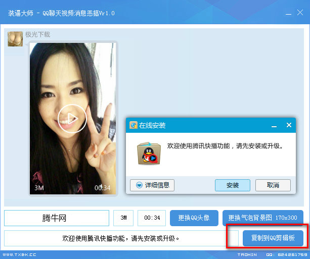 这样发给你的“朋友”们,截图的含义就相当于是你的好友给你发了一个视频,你点开视频,发现不能播放,然后腾讯提示你安装“腾讯快播”,好吧,就这样了...