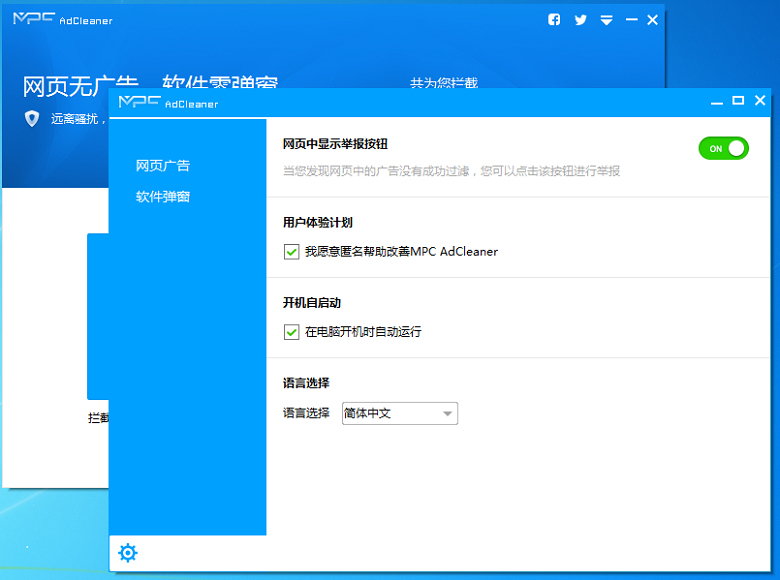 MPC AdCleaner是易于使用和完全免费的。一键开启/关闭显示或屏蔽广告。