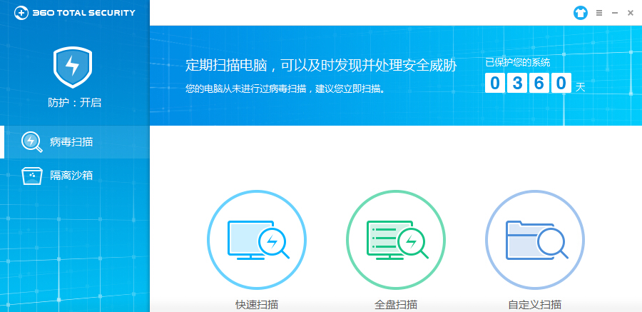 360云安全中心拥有强大的云端资料库以及最快的更新速度,为您提供即时防护和病毒库升级,将各种威胁阻挡在外。