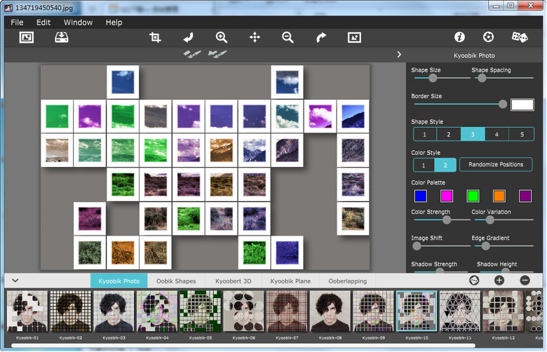 图片处理软件JixiPix Kyoobik Photo可以将您的平凡的照片转换成几何网格平铺图像。网格化的形象?听起来很简单,但惊人的转弯和幻灯片,你可以利用这个程序不但把你的照片变成艺术品的定制工作,但也将可以带你回到20世纪60年代,其弹出式的艺术态度的风格。