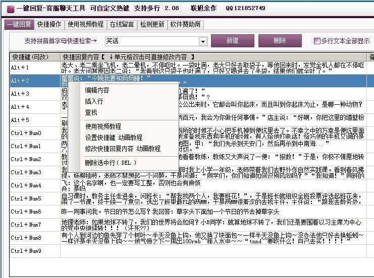 彩云学院一键回复客服聊天工具是一款免费的客服聊天机器人,它可以帮助你自动回复,用户可以按下快捷键直接打出指定文本,同时(支持多行)添加了一些小功能,比如一键翻译选中文本等。一键回复客服聊天工具是一款懒人必备神器,能实现一键打字,一键运行程序,快速注册,快速发贴,快速登陆,一键翻译,一键搜索,网址管理,文件及文件夹管理...,支持在网页,QQ,旺旺,文本,word,游戏,软件...无限制喊话,是一款提高工作学习生活效率的必备工具。