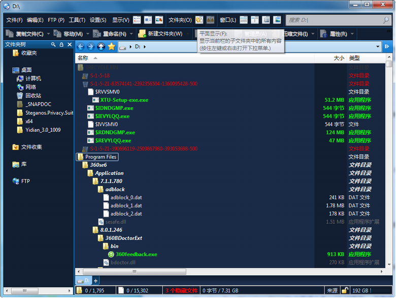 3. 支持文件显示、隐藏过滤功能,以及按照文件属性、目录名或文件名等多种匹配条件来控制显示或隐藏;