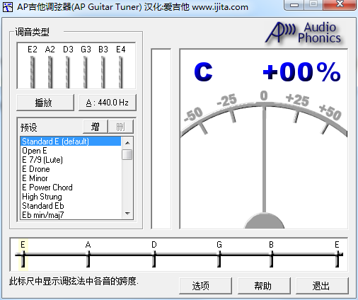 如果不想使用这些类型就要选择该框架中最上方的“Standard E”即可进行默认的常规定音,即E B G D A E的调弦方式。