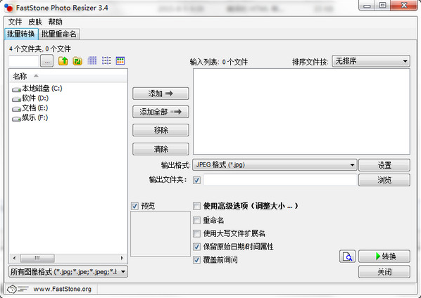 FastStone Photo Resizer 能够让使用者对大量的图档进行转换,