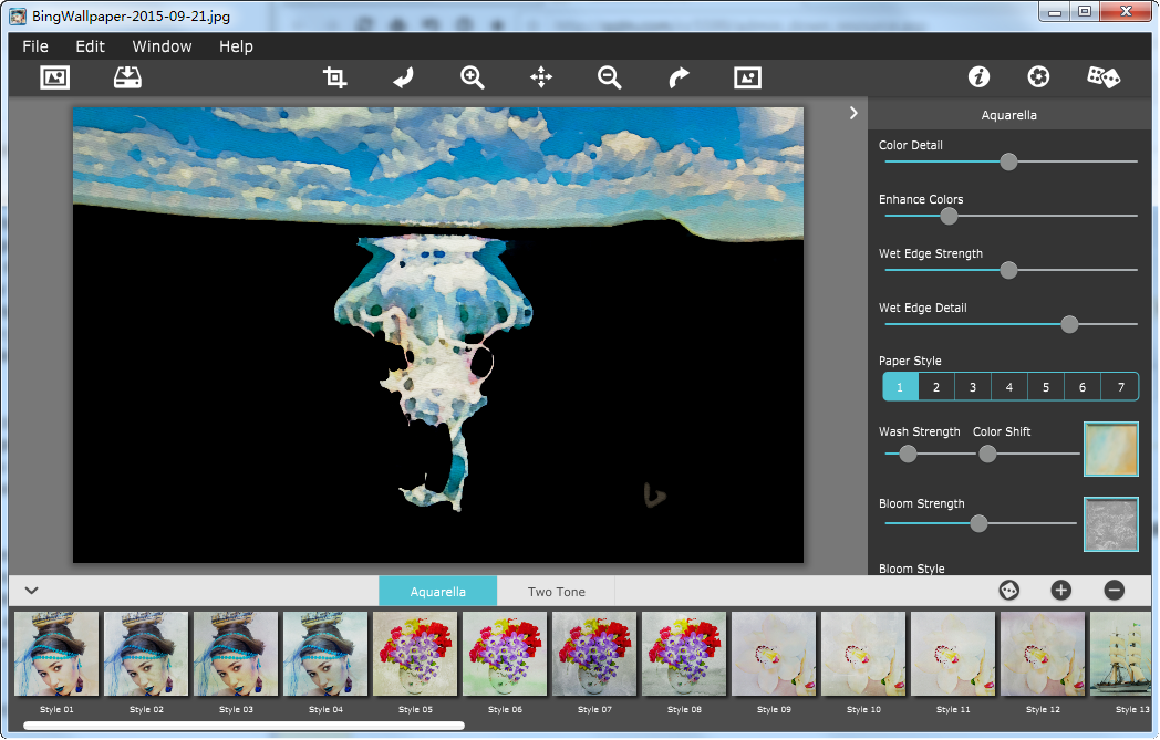 水彩画工具JixiPix Aquarella 是一个简单高效的工具,快速将你的图片变成水彩画。你使您的Aquamedia发现整个创作和刷子沿边缘重叠的色素干暗招湿色跑光细腻“绽放”。当你看到你的新渲染的水彩画Auquarella是专业艺术的应用程序,将提供一个高端的水彩的结果真到原来的媒体。