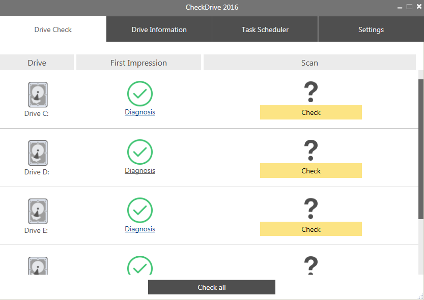 CheckDrive提供您检查您的电脑的硬盘驱动器错误的一种简单的方法。