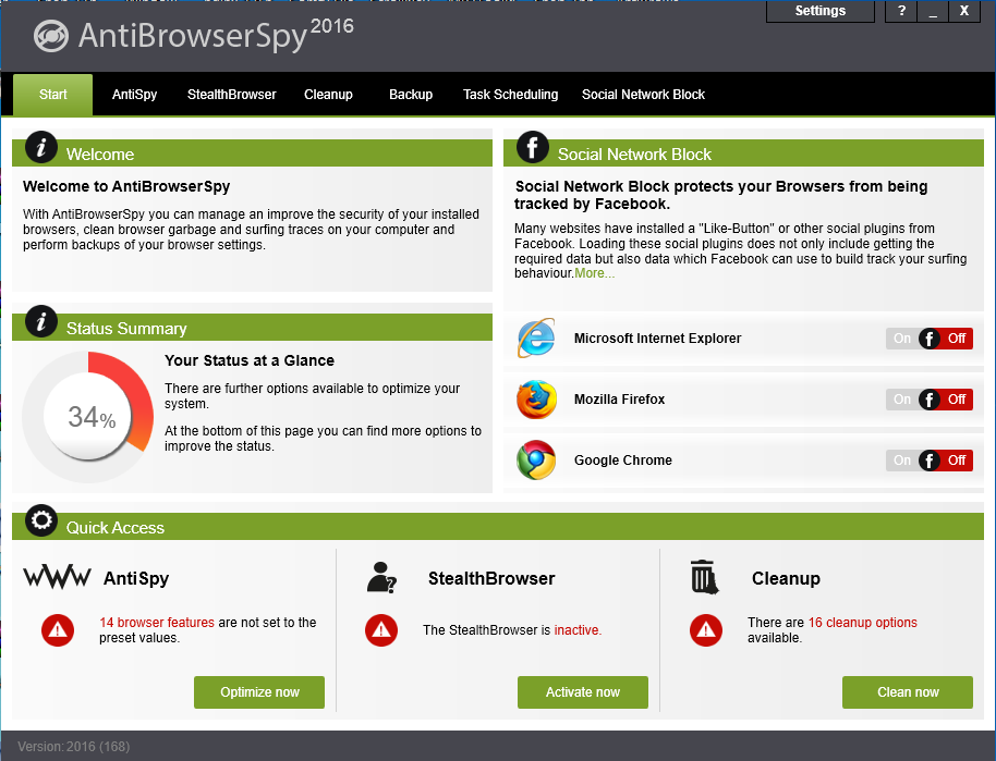 AntiBrowserSpy可以很容易地控制所有的浏览器设置。