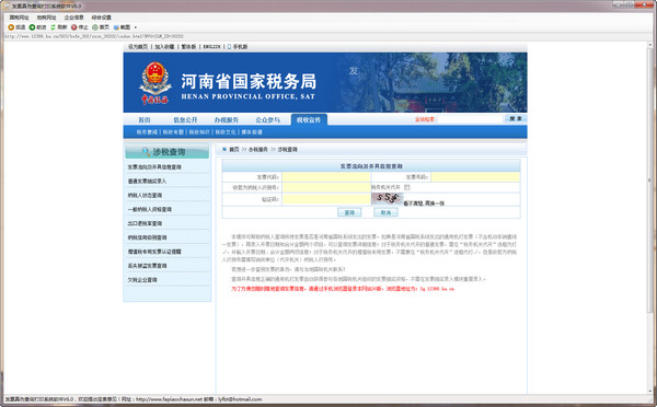 打开软件后,例如你想查询河南国税的发票,请点菜单栏:国税网址——河南国税,即可打开河南国税的官方网站