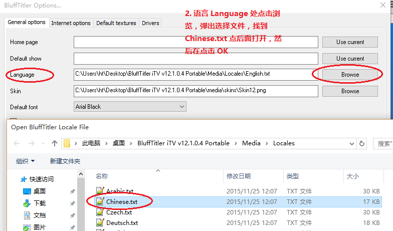 选择文件>打开显示...,然后从BluffTitler /媒体/显示/ Camera文件夹表演。