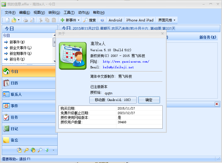 EfficientPIM是一个专业的All-In-One的PIM软件(个人信息管理)。