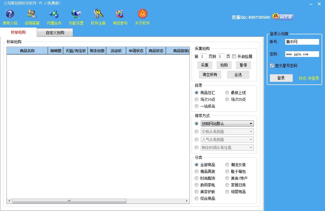 众划算抢购秒杀软件是一款专门针对众划算的网上抢购软件,用户可以设定快速抢购的物品地址,增加用户成功抢购的可能性,手速和软件的执行速度完全就是不再同一层次的比较。众划算抢购软件操作方便,不需要额外学习即可掌握软件的使用,支持自定义抢购各类商品,是喜欢网购的人必备的工具之一,实用性不亚于比价一类的软件。