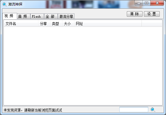 激活激流神探启动后即可监控当前的网页分析流媒体网址;如果激流没有找到流媒体网址,不要气馁,请再次手动刷新网页试试;