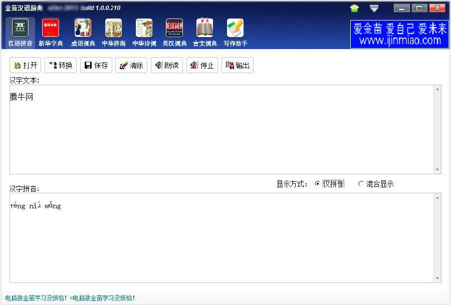 您也可以打开文本文件,转换成拼音后保存。也可以点击朗读,把文本朗读出来。也可以输出到语音文件,听着欣赏。
