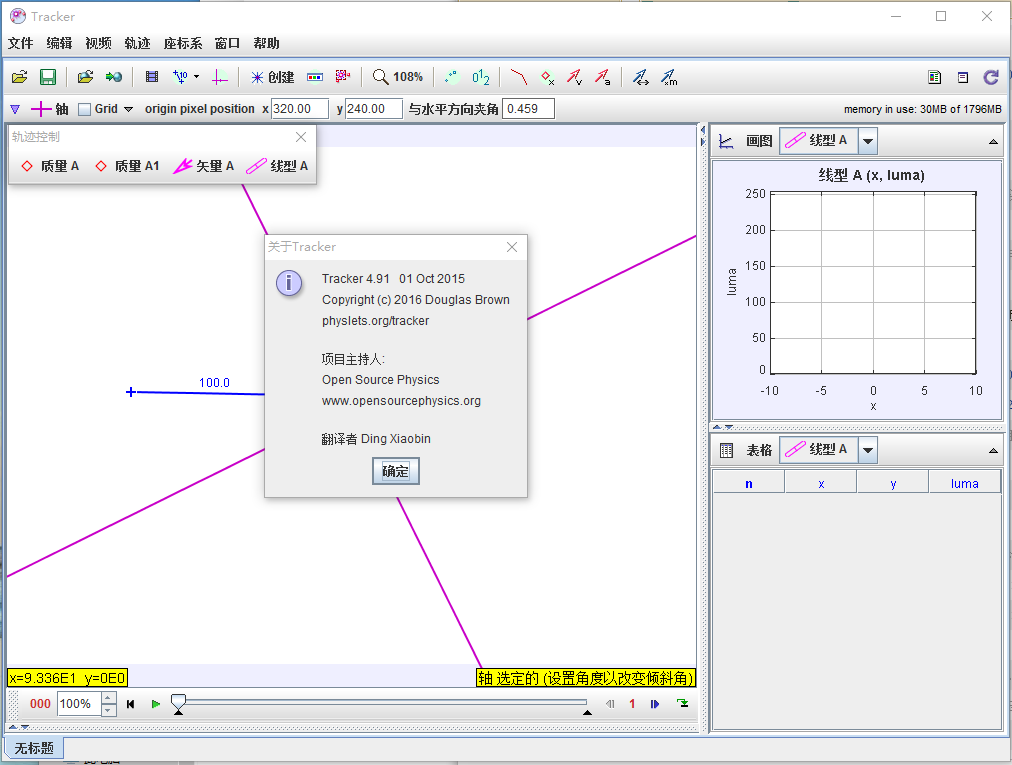 物理实验影像分析软件Tracker 是一套使用于物理教学的影像分析免费自由软体,分析质点或质心的轨迹运动、二维运动、轨迹预测、周期运动、碰撞问题、光谱分析...等等,可以开启的影片格式:MOV、AVI、FLV、MP4、WMV。
