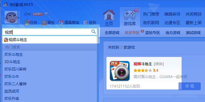 然后搜索“视频斗地主”