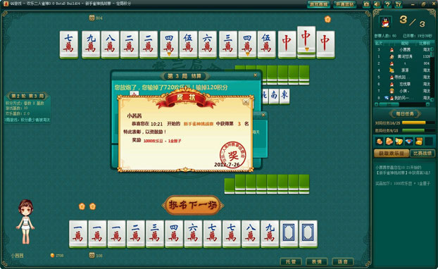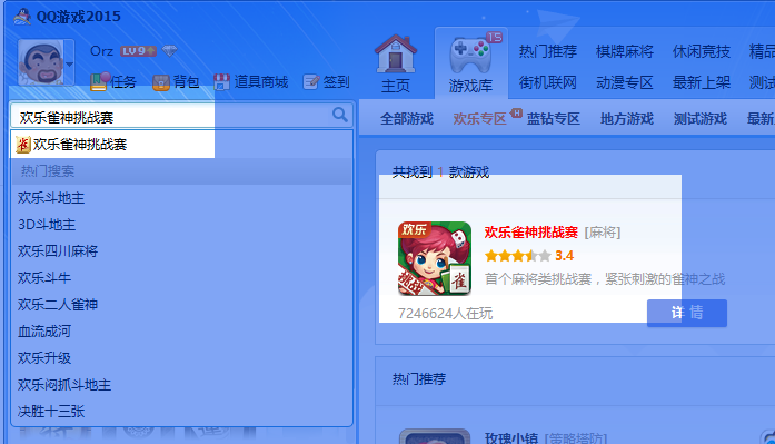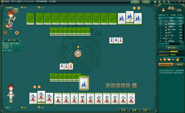 QQ游戏欢乐雀神挑战赛是一款以欢乐豆为积分体系的二人麻将游戏,去掉筒和条子,提高竞技性和胡牌刺激性,减少对局时长;界面给用户耳目一新的感觉;添加任务系统,玩家在完成每日对局任务和胜局任务可获得丰厚的奖励。