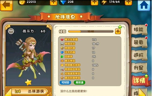 丛林游侠作为初始英雄之一,其输出还是非常不错的,推图和竞技场都能够使用。生存能力方面,虽然身板有些脆,但是有着技能对物理回避率的加强,也就有了与物理队进行抗衡的资本!