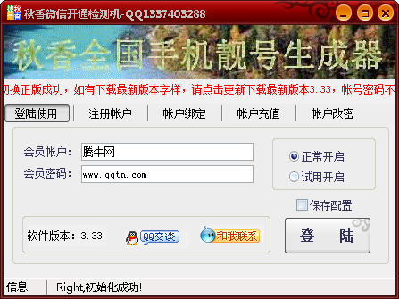这款秋香微信开通检测机不注册,也可享受免费30分钟的试用期限,打开软件后选择“试用开启”即可,能够帮助用户批量查询各类手机号、QQ号、邮箱号是否开通微信。