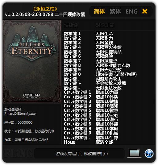 永恒之柱二十四项修改器是针对同名游戏《永恒之柱》制作的游戏辅助,该辅助由风灵月影大大制作,辅助拥有超多功能,包括无限生命、无限耐力、无限金钱、无限经验、无限补给、无限技能点、超级伤害、闪避所有攻击、不会被敌人发现、无限施法等等功能,喜欢玩永恒之柱的玩家欢迎免费下载。