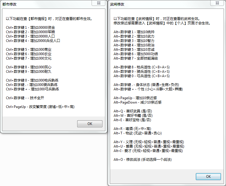 Alt+数字键 2 - 增加10武力