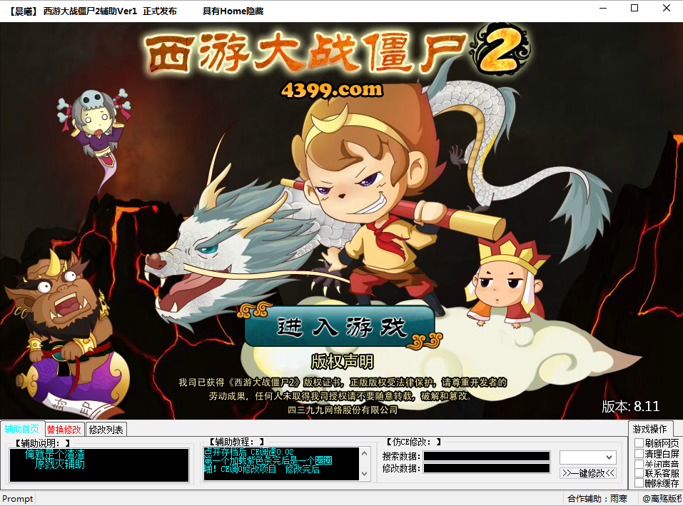 当前位置:星空外围足球网(游戏娱乐页游辅助 → 晨曦西游大战僵尸2辅助 1.0 免费版
