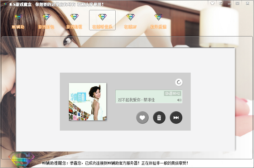MK游戏魔盒是一款多功能游戏盒子工具,盒子包含了MK辅助、游戏封包、游戏教程等资源,在游戏盒子里面还提供了在线听音乐和在线MV,让你在闲暇时也能体验最美好的时光。MK游戏魔盒,你想要的这里应有尽有,欢迎大家下载使用!