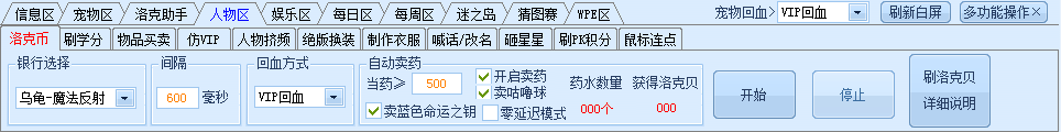 人物区:洛克币、刷学分、仿VIP、人物挤频、鼠标连点