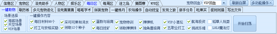 洛克王国绝世辅助是洛克王国辅助史上最完美的辅助工具,本辅助是一款多功能全能辅助工具,辅助主要包括信息区、宠物区、洛克助手、人物区、娱乐区、每日区、每周区、迷之岛、彩图赛、WPE区等几个大的方面。多方位为为玩家提供最好用的辅助功能。