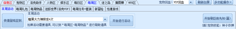 宠物区:智能刷怪、音速速成、带刷小怪、宠物带刷、刷boss、刷物品、抓普通宠、抓稀有宠物