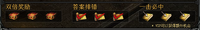 2、 在答题过程中,你有“双倍奖励”,“答案排错”,“一击必中”三种道具可以使用。(VIP会员会有额外使用次数)