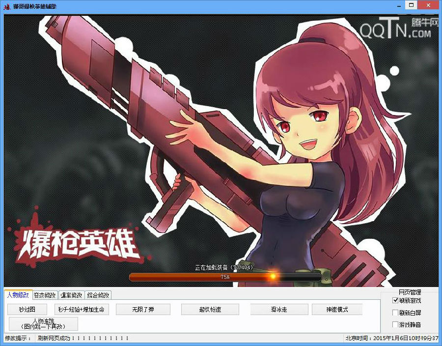 爆枪英雄瑾哥辅助是一款瑾哥玩家专门针对火爆枪战页游《爆枪英雄》制作的游戏辅助,这款辅助拥有秒过图、秒刷经验、增加生命、无限子弹、超快枪速、滑冰走、神速模式等辅助功能,同时这款辅助完全绿色免费稳定无毒,欢迎喜欢爆枪英雄的玩家下载体验!