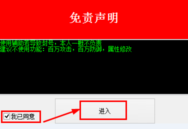 载入辅助后会跳到“免责声明”界面,勾选“我已同意”,点击“进入按钮”