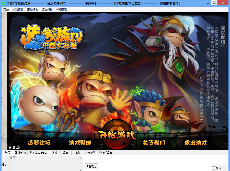 造梦西游4辅助修改功能主要分为“菜单”、“人物修改”、“宠物修改”、“综合修改”、“坐骑修改”五大类,满足玩家各种游戏属性修改方案。