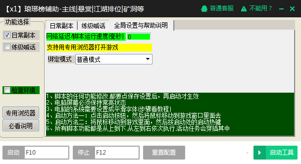 7、脚本使用步骤:设置电脑环境-->选择脚本对应功能-->在对应的游戏窗口内启动
