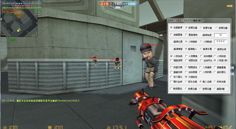 隱藏功能:F7準星 F8方框 F9射线 F10XP血條框 F11win7血條框 ↑↓←→ 調整自瞄點位!