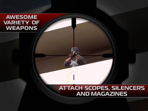 - 可定制的武器装备,升级武器的范围,消音器,和杂志,弹药,和外观,包括投掷小刀,防弹衣,和指节铜环。