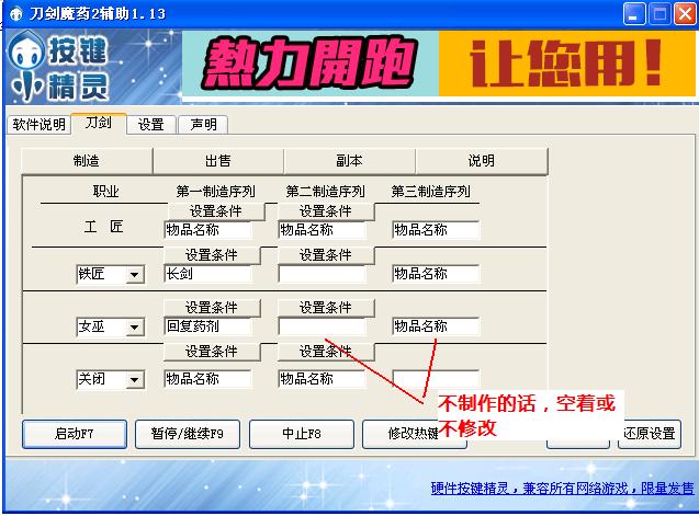 启动刀剑魔药2辅助是游戏显示完整画面,鼠标移动到游戏画面中,按键盘上启动键即可。脚本还能全后台运行,不可最小化。