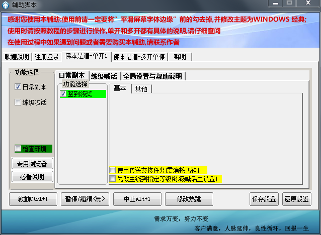 玩家使用佛本是道辅助脚本,首先请查看下载的教程设置电脑相应的参数,然后就能开启佛本是道辅助脚本,享受自动练级、喊话、挂机功能啦。