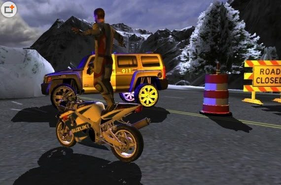 《暴力摩托3 Race Stunt Fight 3》一款真正的暴力摩托!加入了重力感应和触摸屏控制,你需要驾驶一辆摩托车,然后可以攻击其他的摩托车手,当然,你无须仁慈,因为你不攻击别人,别人也会来招惹你的!游戏的控制方式非常简单,重力感应来控制摩托车的方向,下方的虚拟按钮可以用来前进和用来拳打脚踢对手!整体上,这款游戏还是相当有趣的,而且还加入了各种摩托车特技,显得更加好玩